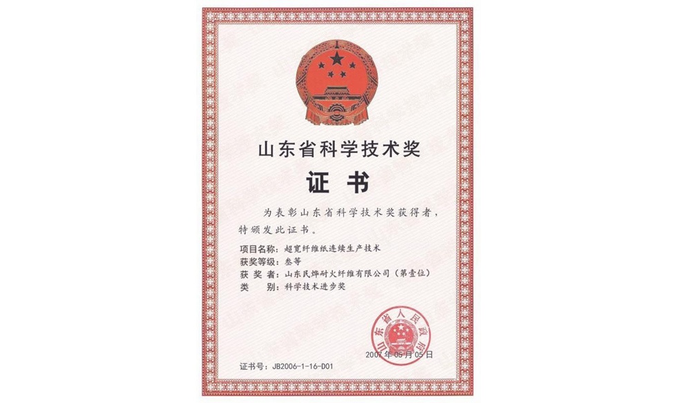 山東省科學(xué)技術(shù)獎(jiǎng)證書(shū)